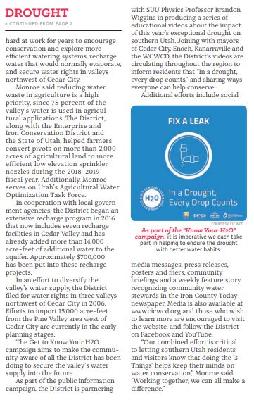 Hall gave a presentation to the CICWCD Board of Directors at its June 20 meeting during which he suggested the district begin working with large, non-agricultural outdoor water users such as Cedar and Enoch Cities, Southern Utah University, and Iron County schools and churches to determine what water conservation activities are in place and what improvements can be made.